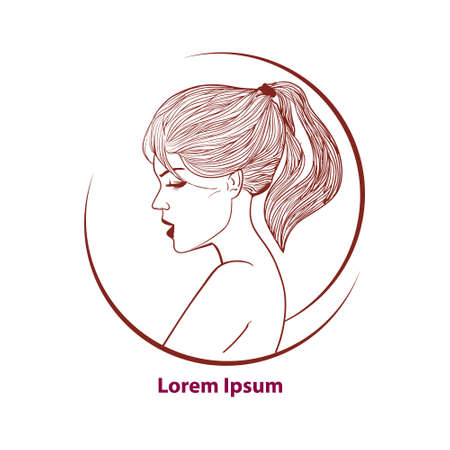 巻き毛 シンプルなイラスト プロフィールとファッションの女の子 のイラスト素材 ベクタ Image